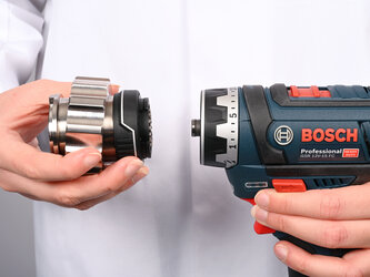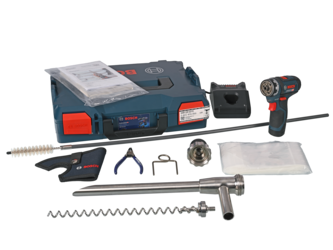 - Stechlanzenadapter in die Aufnahme der Bosch-Antriebseinheit stecken, Förderspirale in die Stechlanze stecken, Stechlanze mit Überwurfmutter an Stechlanzenadapter anschrauben.