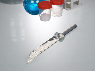 Spatel aus Edelstahl zur Probenahme von Pulvern, Granulaten und pastösen Medien, vor allem im Lebensmittel- und Pharmabereich.