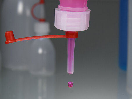 Το καπάκι του σταγονόμετρου μπορεί να επανακλειστεί με ένα πώμα με ένδειξη παραβίασης. Το μακρύ, κωνικό ρύγχος του σταγονόμετρου κλείνει και κόβεται πριν από την πρώτη χρήση. Το ρύγχος του σταγονόμετρου μπορεί να κοντύνει για να προσαρμόσετε τον όγκο των σταγόνων.