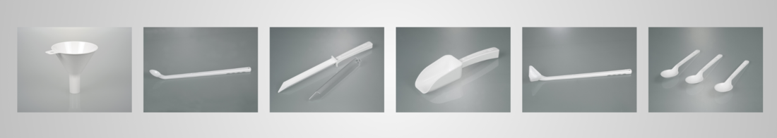 The sampling spoon with long handle can be used to remove powders, granulates, pastes or liquids.