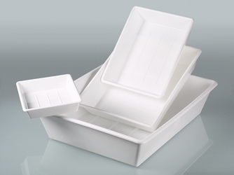 Les cuvettes de laboratoire sont universelles, pratiques et gigognes, résistantes aux sollicitations mécaniques, incassables, indéformables. Les cuvettes possèdent un rebord résistant arrondi.