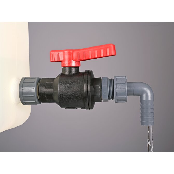 La valvola a sfera PP è adatta a tutti i contenitori con filettatura di attacco G 3/4". Può essere applicata a quasi tutti i contenitori con adattatori di filettatura. Robusta qualità industriale, grande portata.