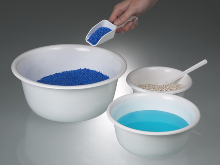 La vasca particolarmente stabile, con un ampio bordo di contenimento, può essere impilata e le sostanze che si solidificano nella vasca possono essere facilmente rimosse.