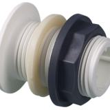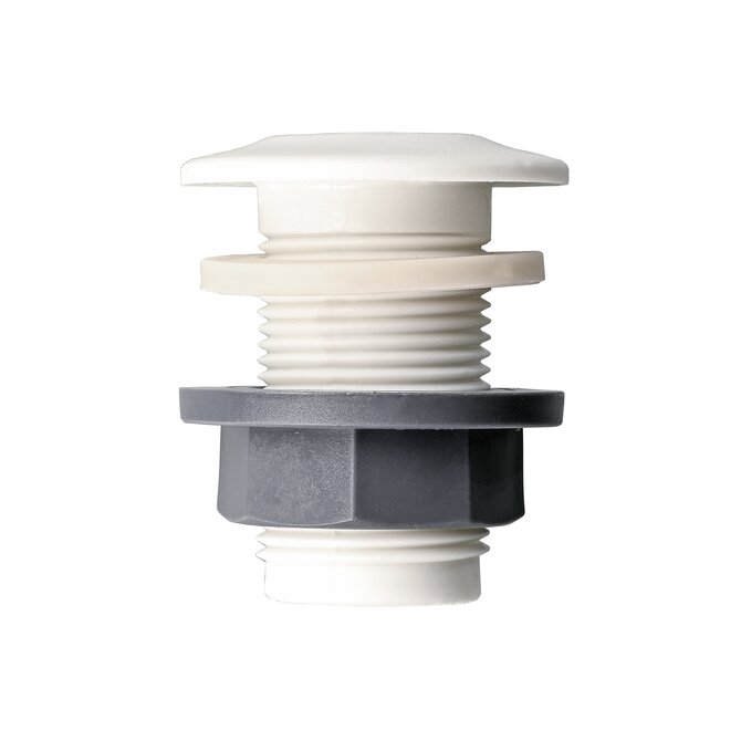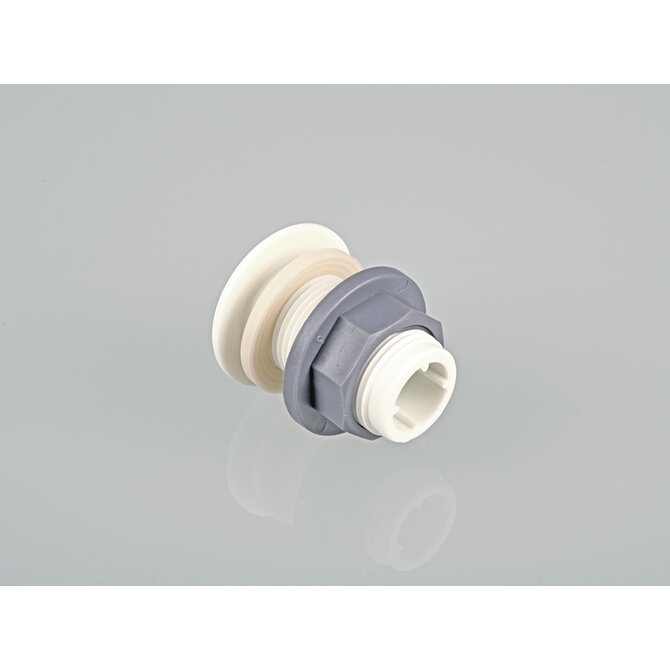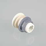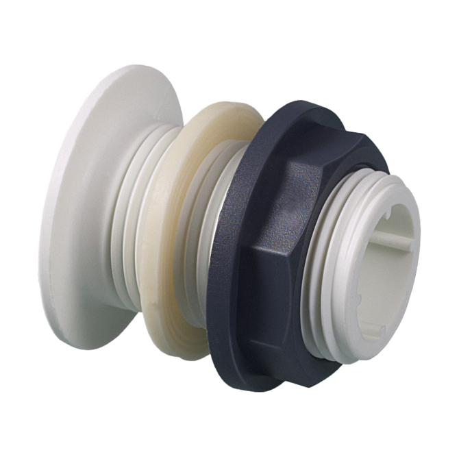 Connettore per contenitori con filettatura esterna, completo di guarnizioni in EPDM, per facilitare il montaggio della filettatura sui lati dei contenitori.
