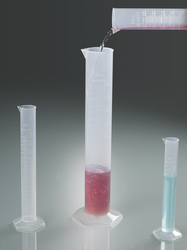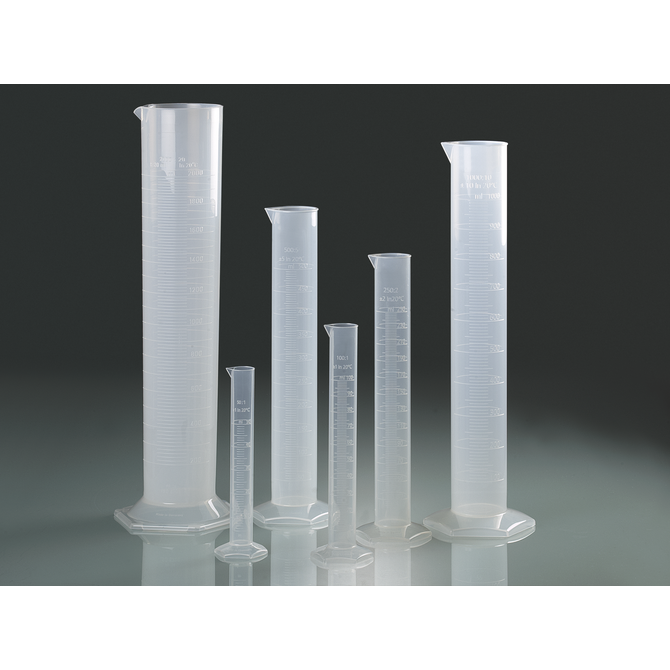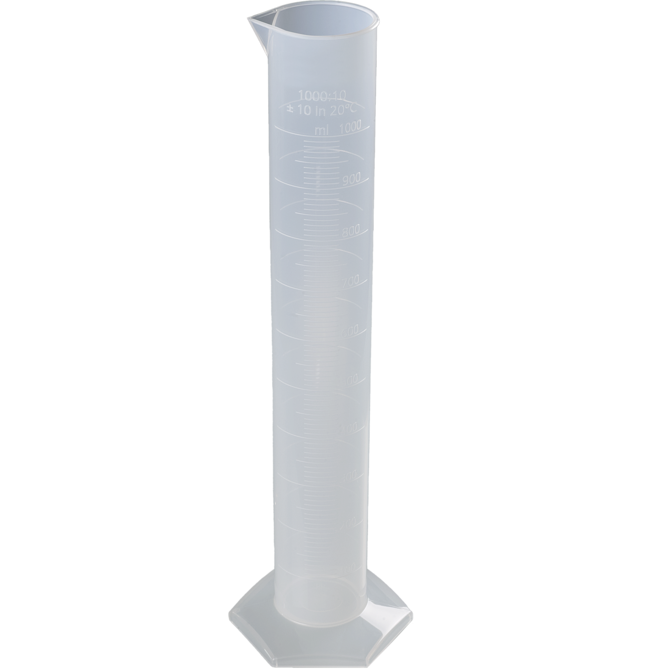 Cilindro di misura, di forma alta, conforme alla norma DIN 12681 (vetro)/ISO 6706, con base esagonale. Da utilizzare nei laboratori, nelle farmacie, nelle officine, durante i lavori sul campo all'aperto e ovunque sia necessario effettuare misurazioni volumetriche durante la produzione.