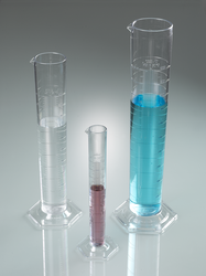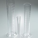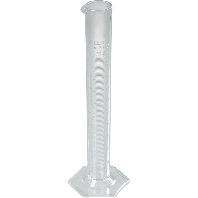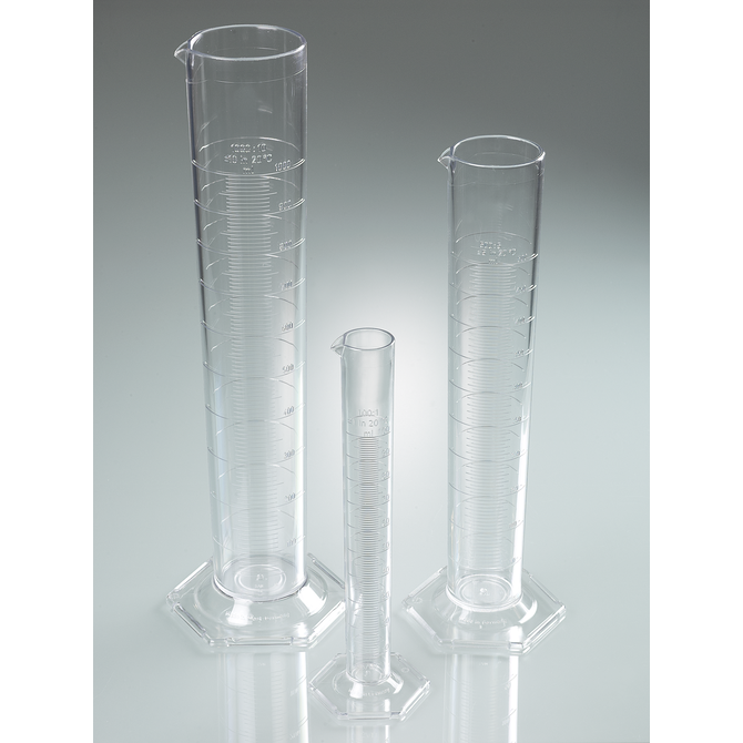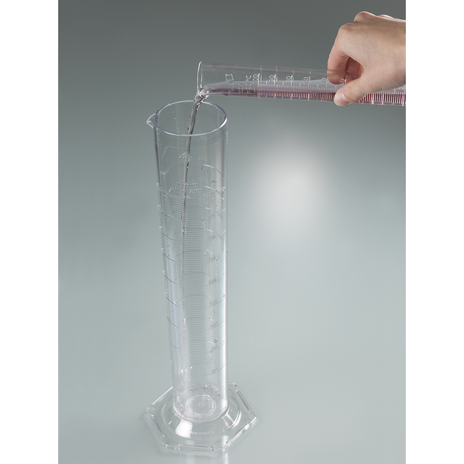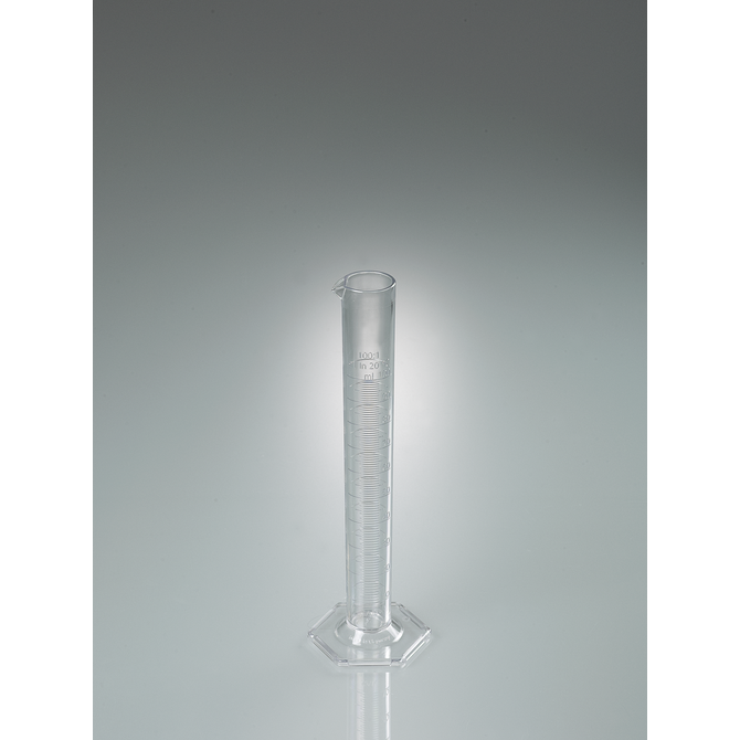 Cilindro di misura, di forma alta, conforme alla norma DIN 12681 (vetro)/ISO 6706, con base esagonale. Da utilizzare nei laboratori, nelle farmacie, nelle officine, durante il lavoro sul campo all'aperto e ovunque sia necessario effettuare misurazioni volumetriche durante la produzione.