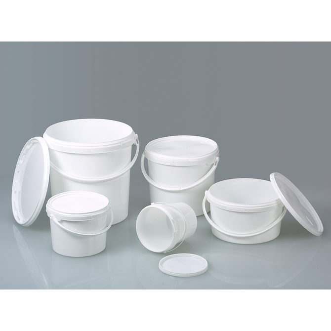 Secchio da imballaggio per il trasporto, l'imballaggio e lo stoccaggio di vari materiali. Adatto per l'industria alimentare o dei materiali da costruzione e per i prodotti chimici non aggressivi nella protezione ambientale, negli ospedali e in casa. Con manico robusto. Chiusura di qualità sul secchio per la sicurezza del prodotto.