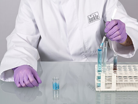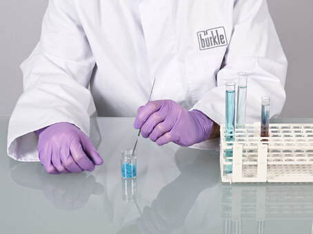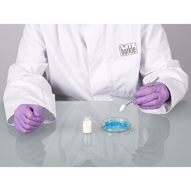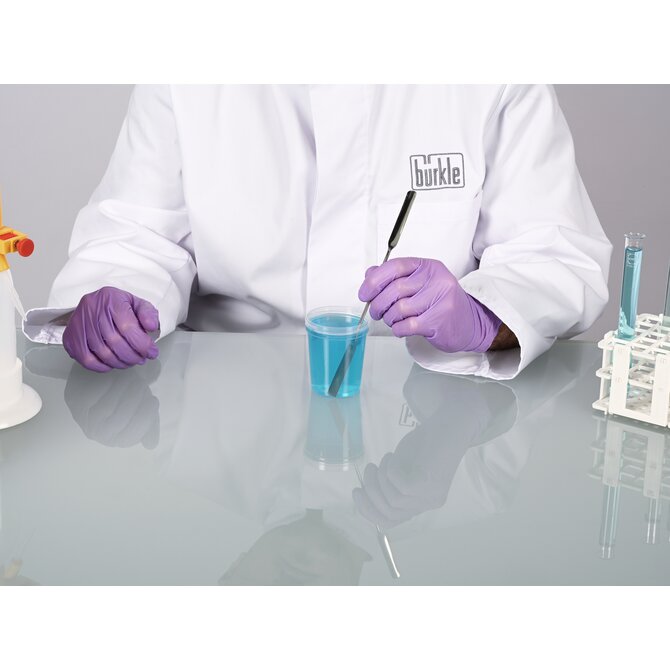 La micro spatola può essere utilizzata per misurare, campionare o lavorare in modo affidabile piccole quantità di polveri, sostanze chimiche, paste, creme o principi attivi. Il misurino da laboratorio è realizzato in acciaio inossidabile ed è prodotto interamente senza spigoli, fessure o sottosquadri. Ciò esclude la possibilità di impurità o contaminazione incrociata, poiché non possono depositarsi residui di prodotto o detergenti.