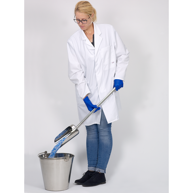 La benna da laboratorio è particolarmente adatta per la miscelazione, la decantazione e il trasporto professionale di liquidi e prodotti sfusi nell'industria chimica, farmaceutica, cosmetica, alimentare e dei mangimi.