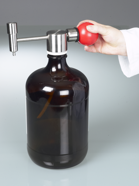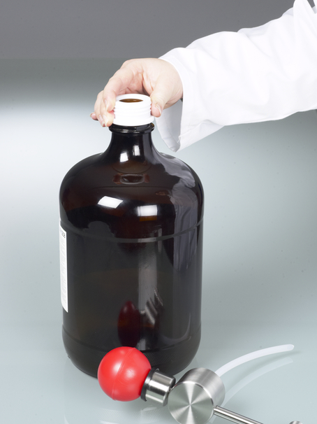 L'adattatore per la pompa per solventi Mini viene utilizzato in tutti i casi in cui si utilizzano contenitori di diverse dimensioni e forme di filettatura. Nei laboratori chimici, ad esempio, consente di pompare in modo sicuro i solventi da bottiglie di stoccaggio più piccole. È utile anche nelle strutture di produzione e ricerca farmaceutica, dove vengono utilizzate unità di confezionamento diverse.