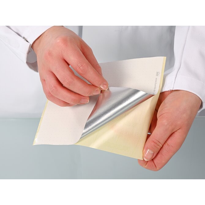 close-itはこの目的のために特別に開発された。このラベルはサンドイッチタイプの構造(アルミニウム/紙)で、容器を密封(蒸気バリア)します。これにより、吸湿性の粉体が固まるのを実質的に防ぎます。