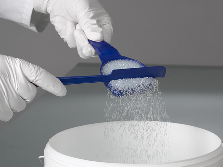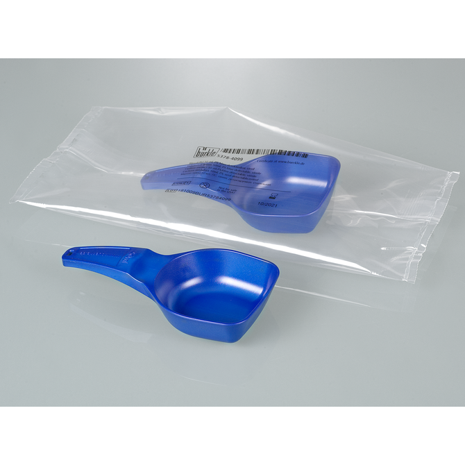 青色ポリスチレン製の検出可能なステリプラスト®スクープは、クラス7のクリーンルーム(10,000台)で製造され、使い捨て用に個包装された後、ガンマ線滅菌されます。