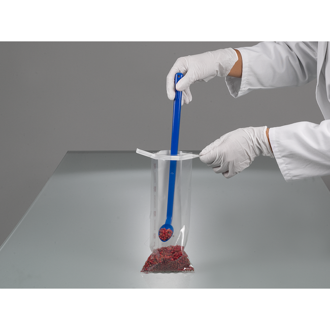 柄が長いので、大きな容器の底にも届きやすく、開口部の直径が小さいドラム缶、ジェリカン、ボトルもサンプリングできます。柄のくぼみのおかげで、使い捨てスプーンは手に心地よくしっかりとフィットします。