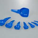 スプーンボウルがカーブしたスプーンは、粉体、顆粒、ペースト、液体など、さまざまな媒体に適しています。角度のついたスプーン形状は、容器の角にもよく届きます。プラスチックスプーンの長い柄は、大きな容器の残渣を簡単に空にすることができ、首の細いジェリカンのような届きにくい場所にも届きます。