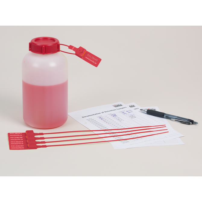 Zatrzymane próbki muszą być zawsze zabezpieczone przed fałszowaniem i niejednoznaczną identyfikacją. Dlatego butelki z oczkami do plombowania powinny być zabezpieczone plombami SampleSafe.