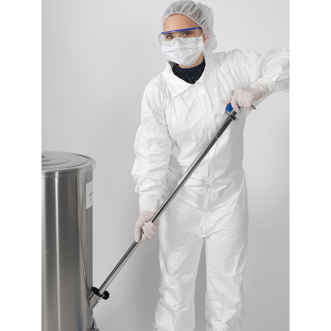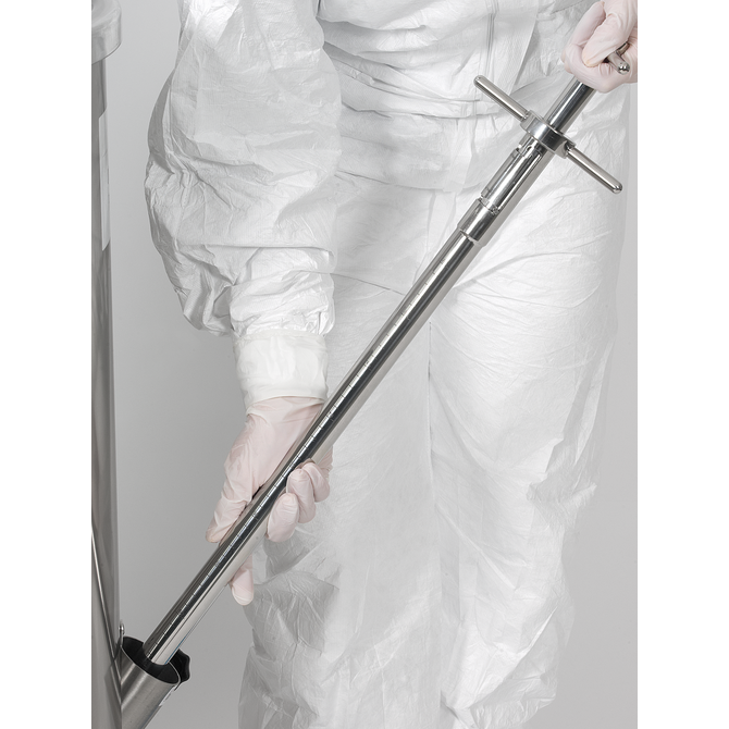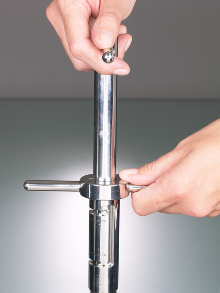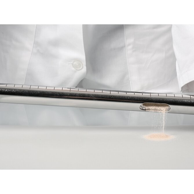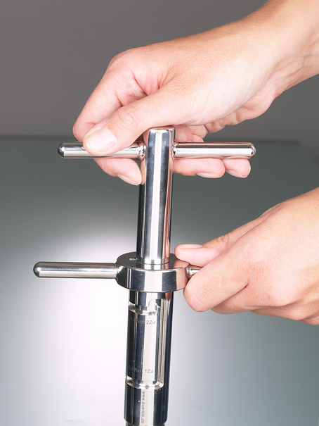 样品枪的浸入深度可通过激光雕刻的深度刻度轻松读取。圆形尖端可防止划伤容器。两个附加手柄可确保在材料中安全插入、固定和旋转。精确配合的插入件可防止材料混合,并便于拆卸,以便彻底清洗。